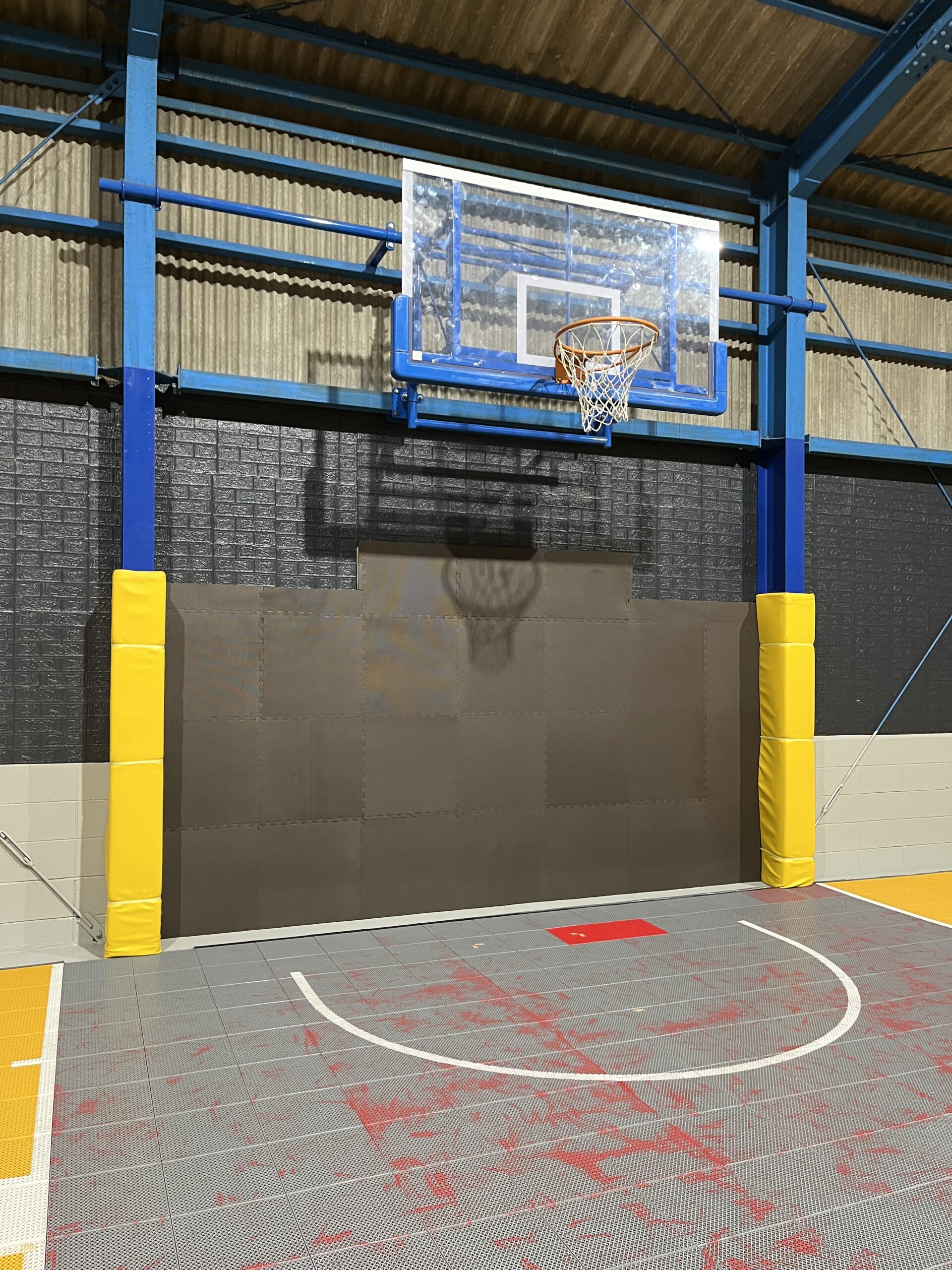 プレー中レーアップなどで衝突した際のケガを防止するため、ゴール下の壁面にクッションを設置しました! 今後もより安全に・快適にバスケをお楽しみいただけるよう、設備の改善を行っていきます!