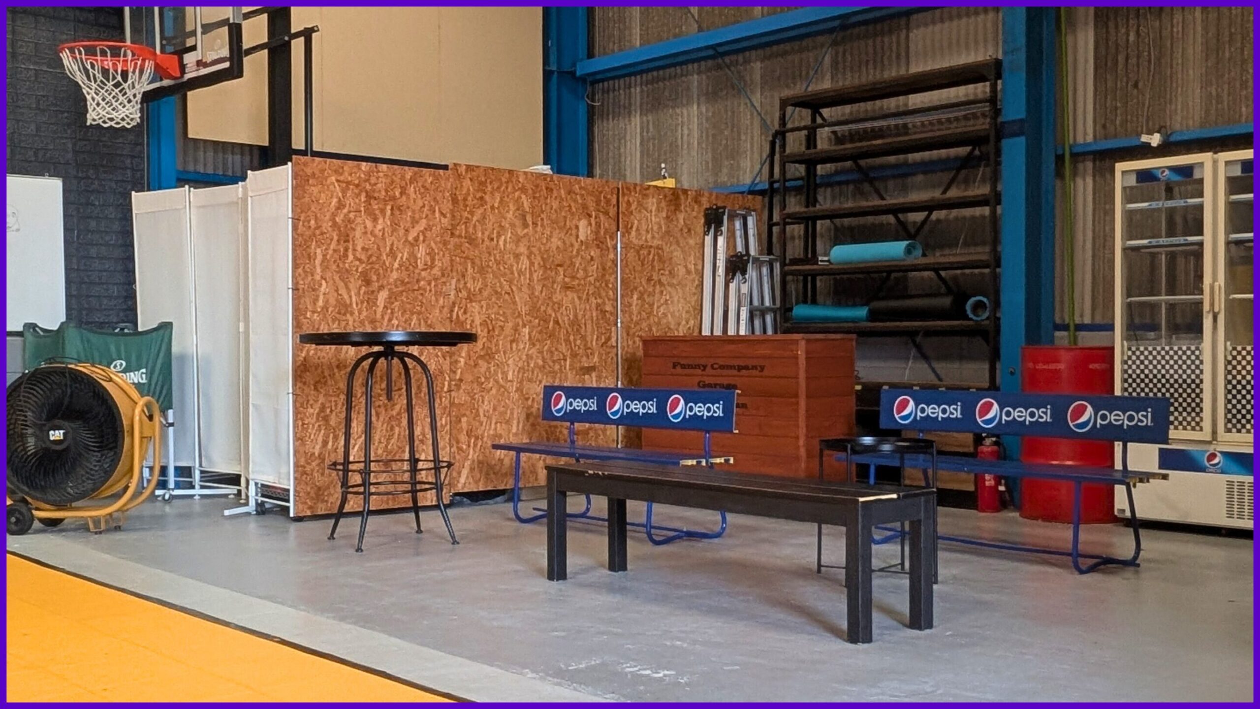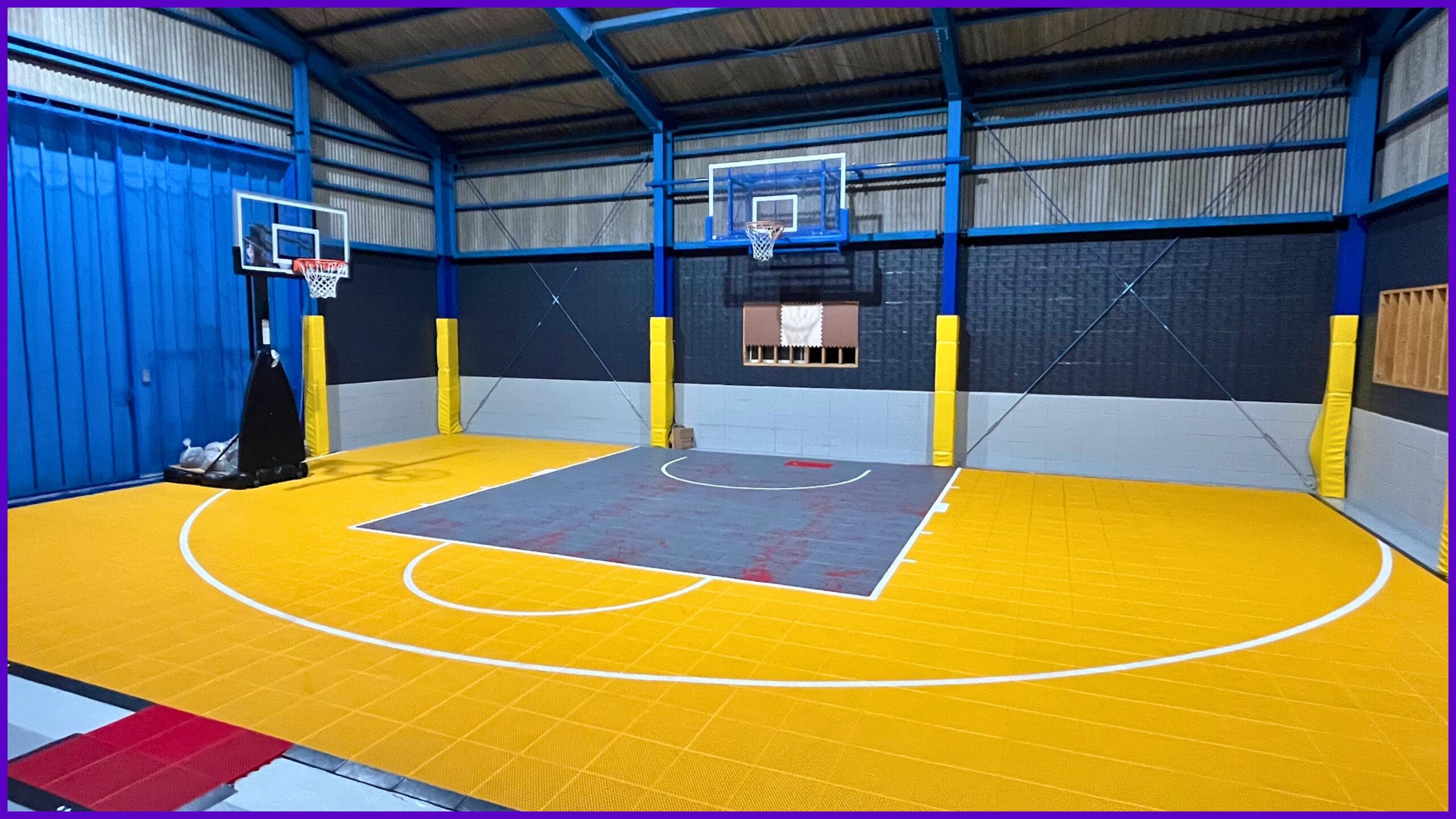 屋内の半面コートに大人用ゴール(305cm)と